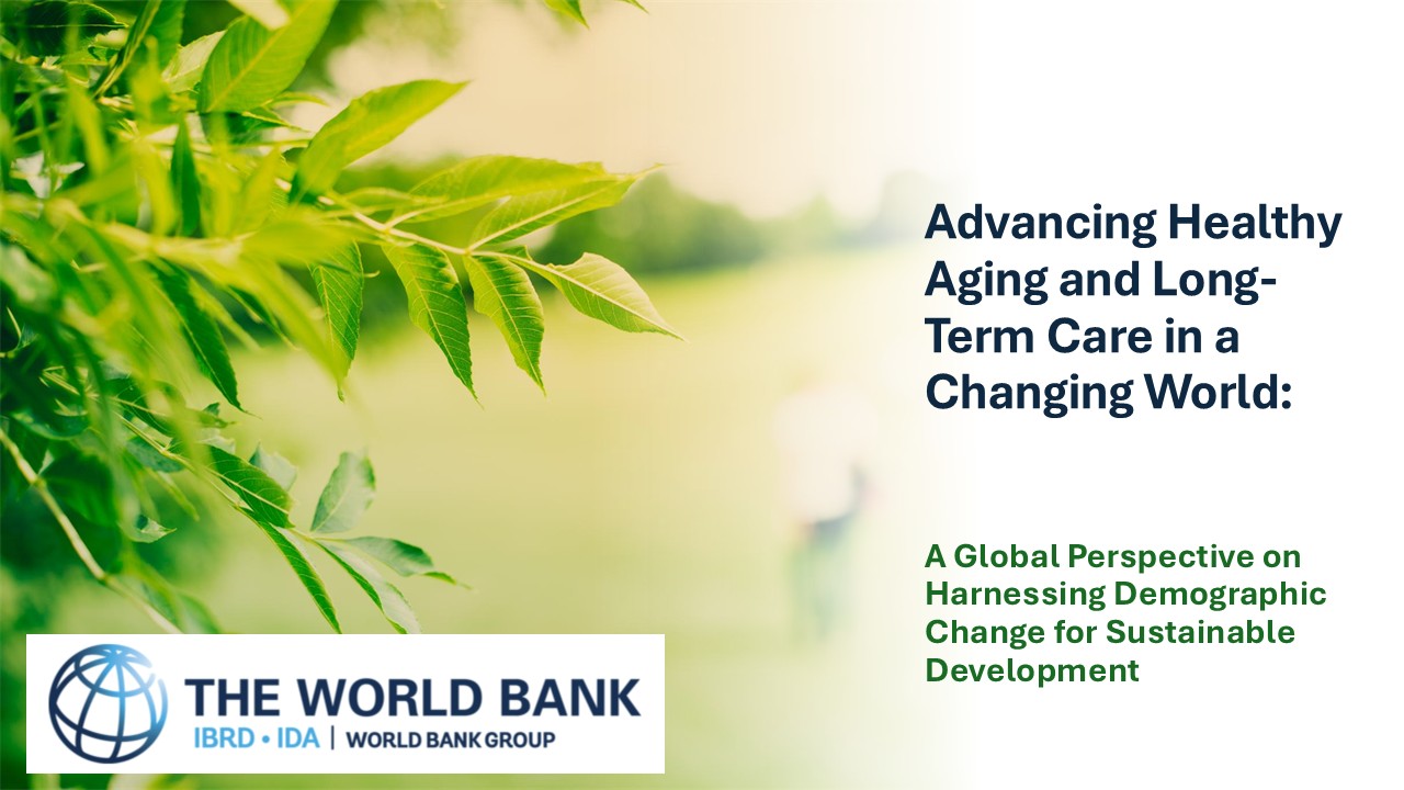 To meet these challenges, health and social care systems must be reimagined with a clear focus on healthy aging, prioritizing the maintenance of functional ability and the delay of morbidity throughout the life course. Integrated, person-centered long-term care models are essential to support older adults, especially as care dependency arises. Global collaboration, knowledge sharing, and policy innovation highlighted by country experiences across geographies such as EAP (e.g., Thailand, Japan, China, Korea), ECA (e.g., Türkiye, Poland), LAC (e.g., Brazil, Colombia, Costa Rica, Uruguay), MENA (e.g., Saudi Arabia, Morocco), SAR (e.g., India, Nepal, Bhutan, Sri Lanka) are critical for developing sustainable approaches to healthy aging. By shifting the conversation and investing in systems that empower older adults to age with dignity in their communities, societies can turn the realities of aging into a foundation for progress and resilience.