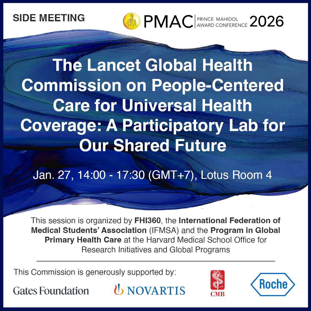 This workshop, co-hosted by FHI 360, the Harvard Medical School Program in Global Primary Health Care, the Praboromarajchanok Institute of the Thai Ministry of Public Health, and the International Federation of Medical Students Association (IFMSA) will present a rich exploration of the goals and ongoing work of the Lancet Global Health Commission on People-Centered Care for Universal Health Coverage and other organizations. The Commission (which officially launched in October 2024 and convened in January 2025) brings together 34 diverse commissioners and 15 advisers and aims to co-produce definitions, measurements, and implementation strategies that deeply center the lived experiences of individuals and communities in health system design and policymaking.