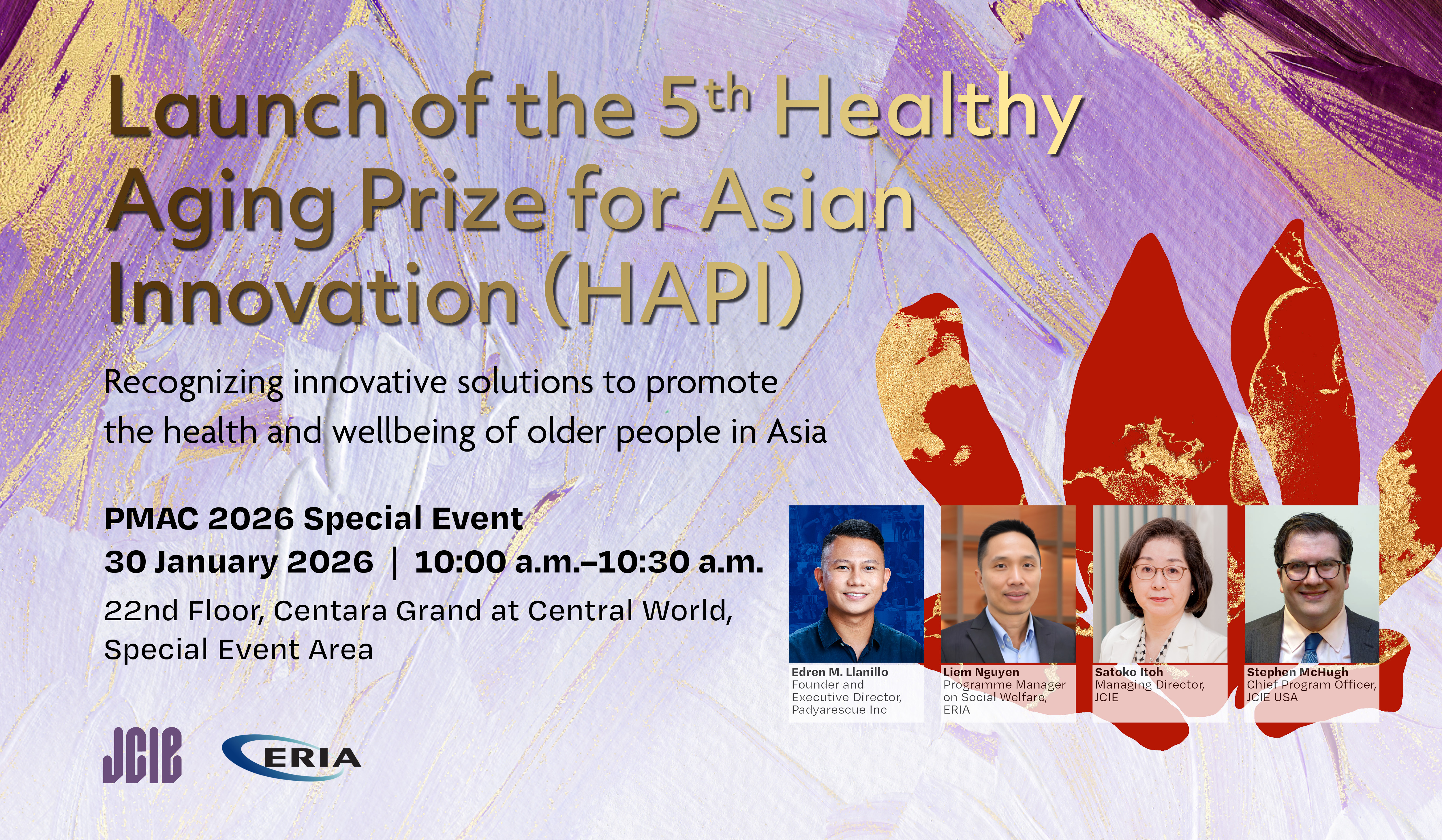 The fifth round of the Healthy Aging Prize for Asian Innovation (HAPI) is scheduled to be launched in February 2026, right after PMAC. This special event will feature a fire-side chat between the organizers and a previous winner of the award. The event will (1) provide information about the call for applications for the next round of HAPI for PMAC guests that might be interested in applying or sharing information with individuals or organizations in their networks. And will (2) highlight the innovative work being done by past HAPI winners throughout Asia to improve the health and wellbeing of older people and address the needs of aging societies, including through an intergenerational program where Filipino youth provide health monitoring and disaster preparedness training to older adults in their communities.